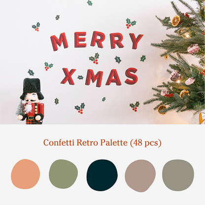 - MERRY XMAS Removable Wall Decal + Confetti Shapes (Retro Palette)
