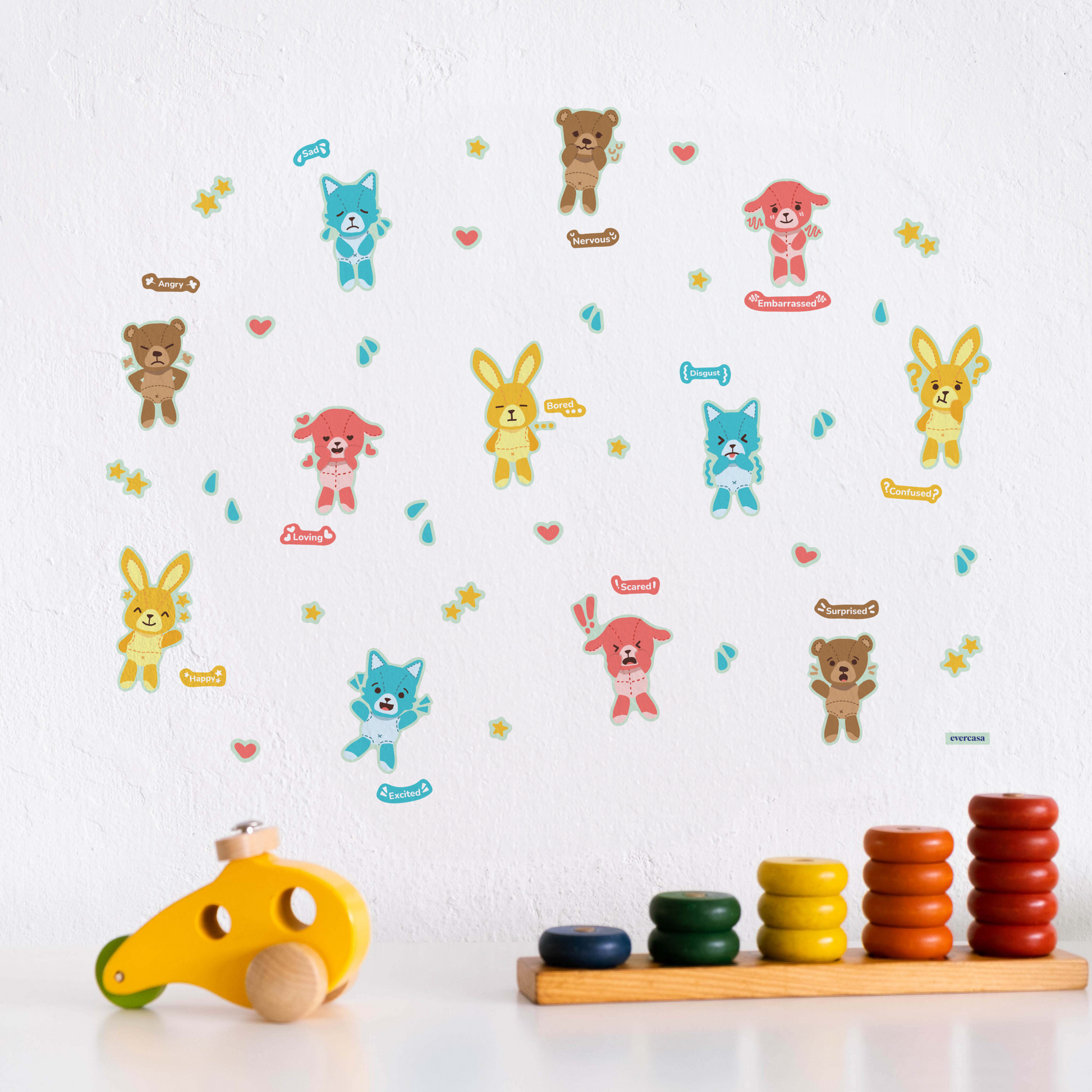 - 50 decals: 12 emotions w/ name labels, 6 hearts, 10 teardrops, and 10 stars.
