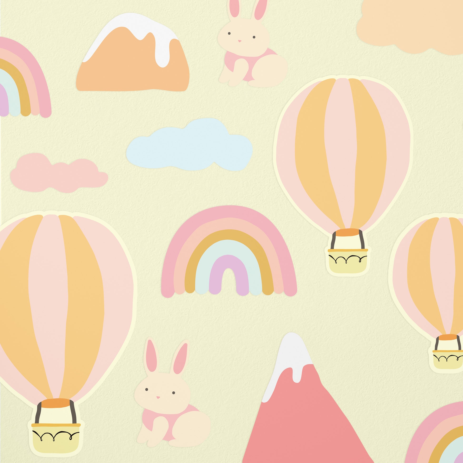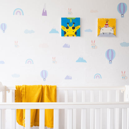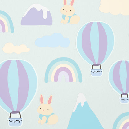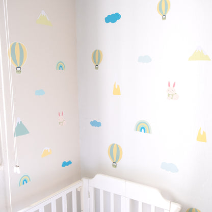 - 80 decals - 18 rainbows, 16 hot air balloons, 14 mountains, 15 rabbits, and 17 clouds.
